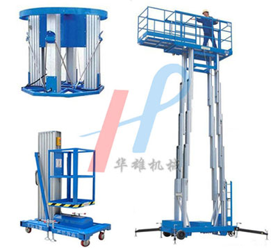 單桅鋁合金升降機是由單桅柱支撐作業(yè)平臺,是起初出現(xiàn)的鋁合金升降機。具有升降平衡,操作方便等優(yōu)點能,可隨意進(jìn)出電梯且耗電少、無污染、工作時不傷 地面,可用于貼墻工作及探出作業(yè),工作無死角等優(yōu)點。雙桅鋁合金升降機整體采用高強度鋁型材精制而成由于型材強度高,使升降臺的偏轉(zhuǎn)與擺動極小。采用雙桅柱式結(jié)構(gòu),載重量大,平臺面積大,穩(wěn)定性極好,運轉(zhuǎn)靈活,推行方便。 三桅鋁合金升降機由三組桅柱支撐作業(yè)平臺同步升降,支腿結(jié)構(gòu)同單桅柱式平臺,具有超大的載重量和優(yōu)秀的工作穩(wěn)定性。四桅鋁合金升降機整體采用高強度鋁型材精制而成由于型材強度高,采用四桅柱式結(jié)構(gòu),穩(wěn)定性極好,運轉(zhuǎn)靈活,載重量大,平臺面積大,推行更方便。