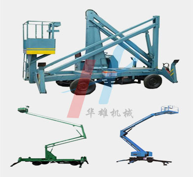 曲、折臂式升降機是多功能、多用途的作業(yè)裝置。通過大臂前端托架,可以快速安裝舉升裝置或載人平臺,實現(xiàn)物料舉升、起重吊裝和載人高空作業(yè)等功能,同時為擴(kuò)展作業(yè)裝置以及各種工作裝置的快速切換提供了接口。